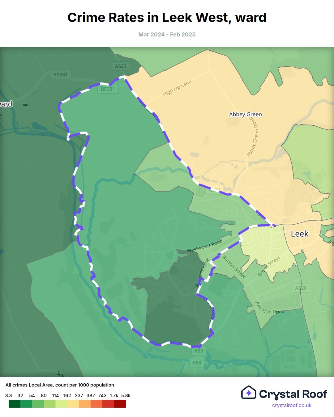 Leek West, (ward) includes areas with the following crime ratings (see map):