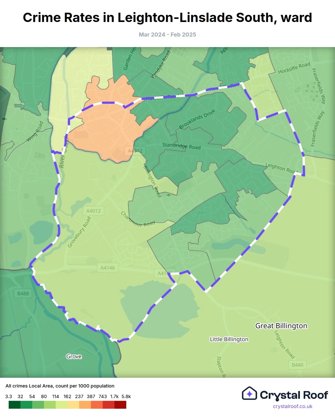 Leighton-Linslade South, (ward) includes areas with the following crime ratings (see map):