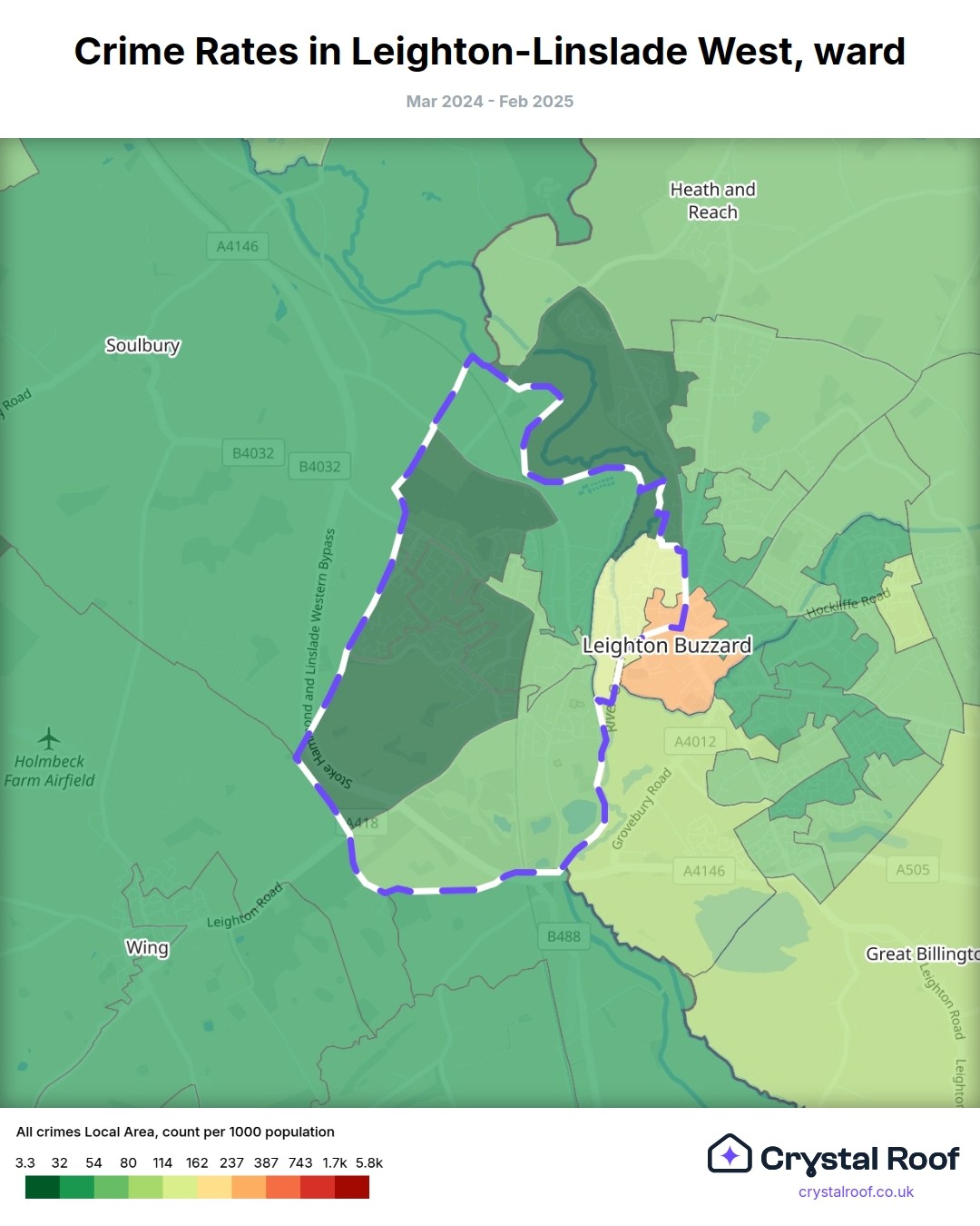 Leighton-Linslade West, (ward) includes areas with the following crime ratings (see map):