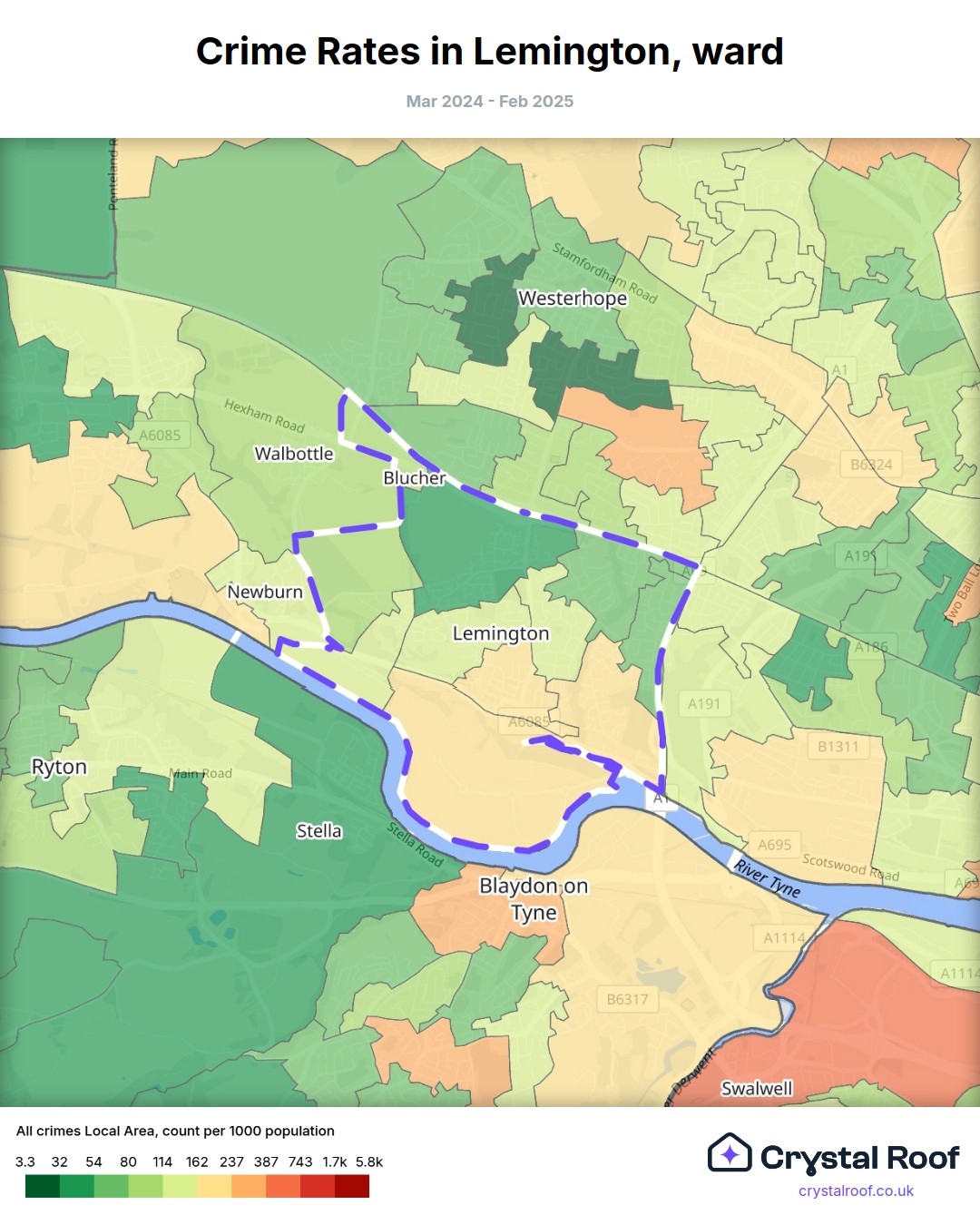 Lemington, (ward) includes areas with the following crime ratings (see map):