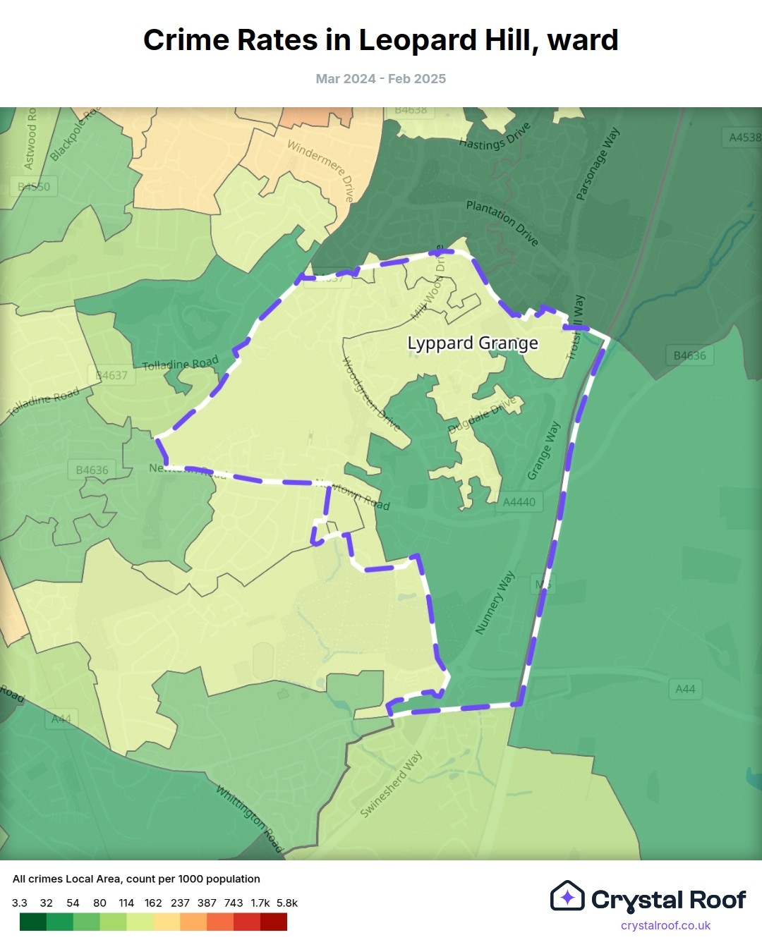 Leopard Hill, (ward) includes areas with the following crime ratings (see map):