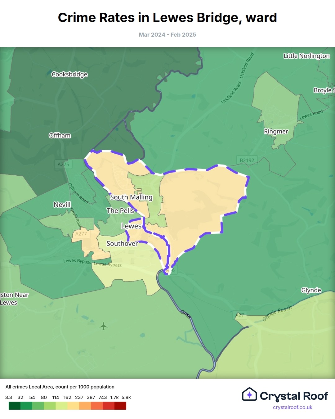 Lewes Bridge, (ward) includes areas with the following crime ratings (see map):