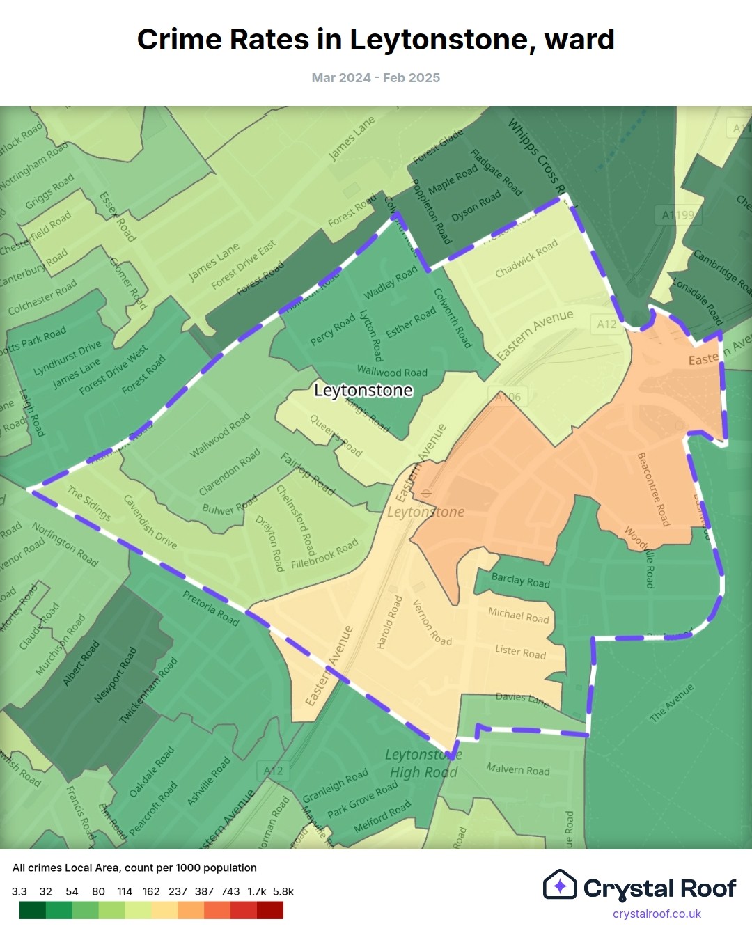Leytonstone, (ward) includes areas with the following crime ratings (see map):