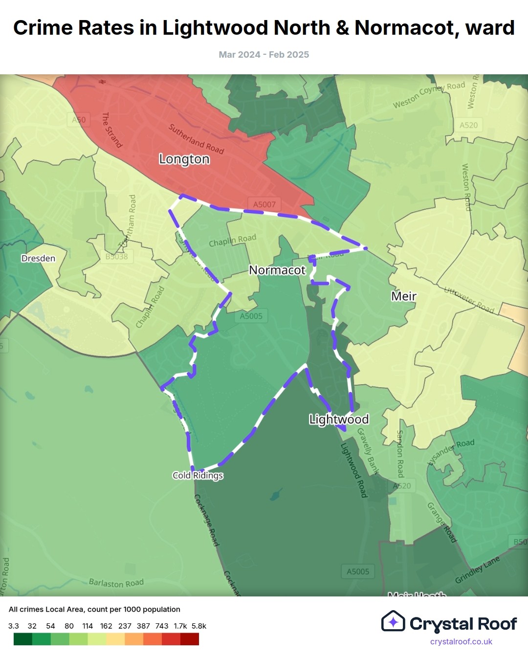 Lightwood North & Normacot, (ward) includes areas with the following crime ratings (see map):