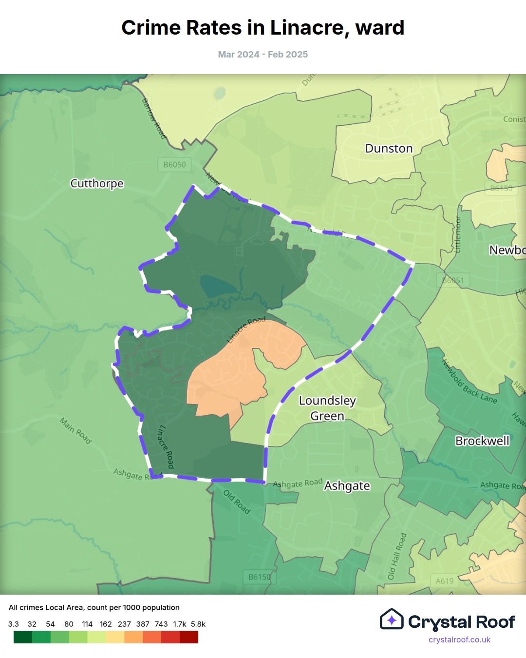 Linacre, (ward) includes areas with the following crime ratings (see map):
