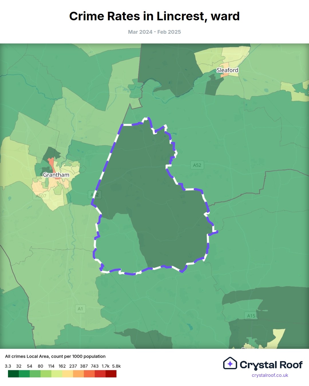 Lincrest (ward) is located within South Kesteven (borough). Annual total crime rate in South Kesteven (borough) is 70.9 crimes per thousand resident population, which can be rated as 2 out of 10 or low crime level compared to other local authority districts in England and Wales.