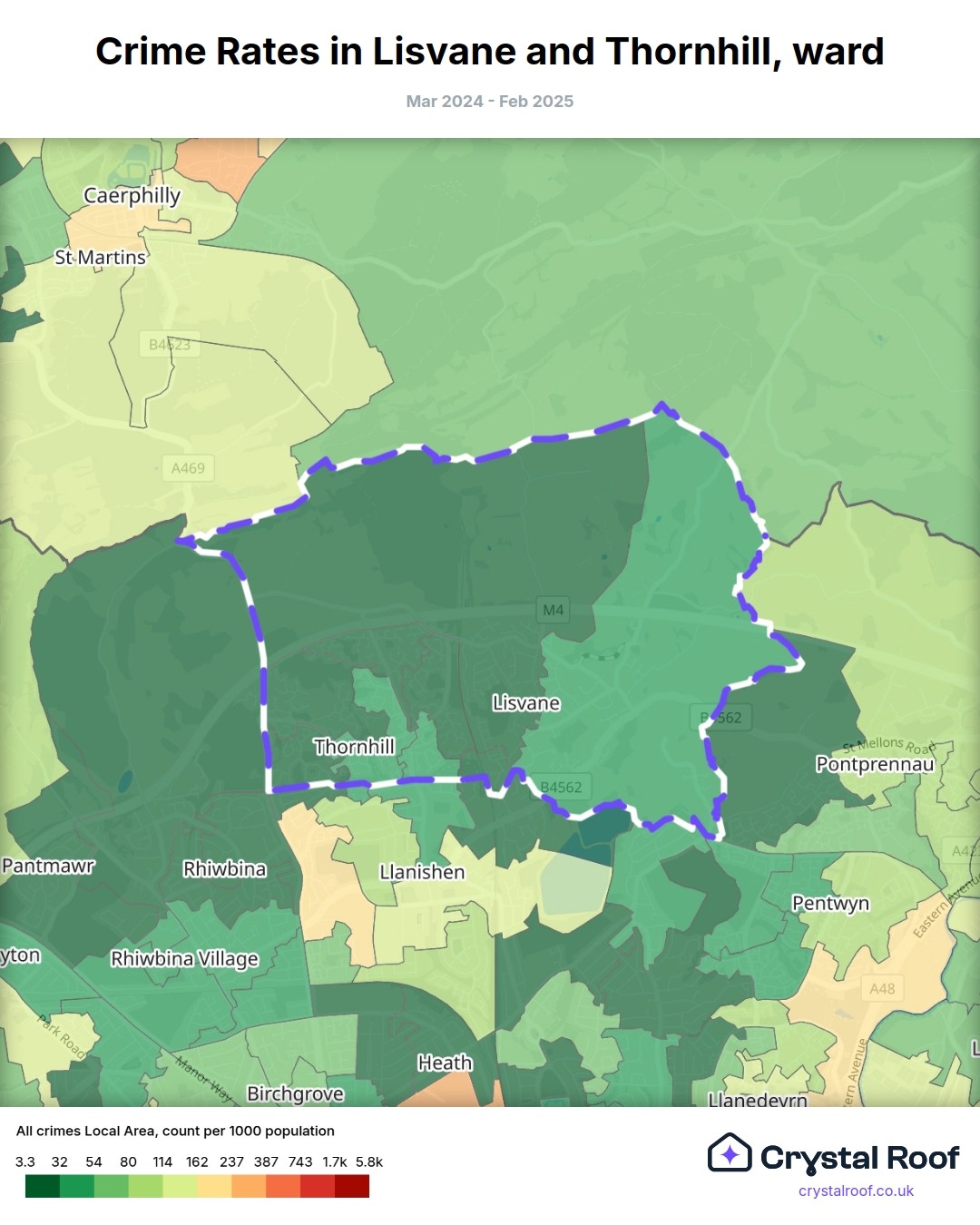 Lisvane and Thornhill, (ward) includes areas with the following crime ratings (see map):