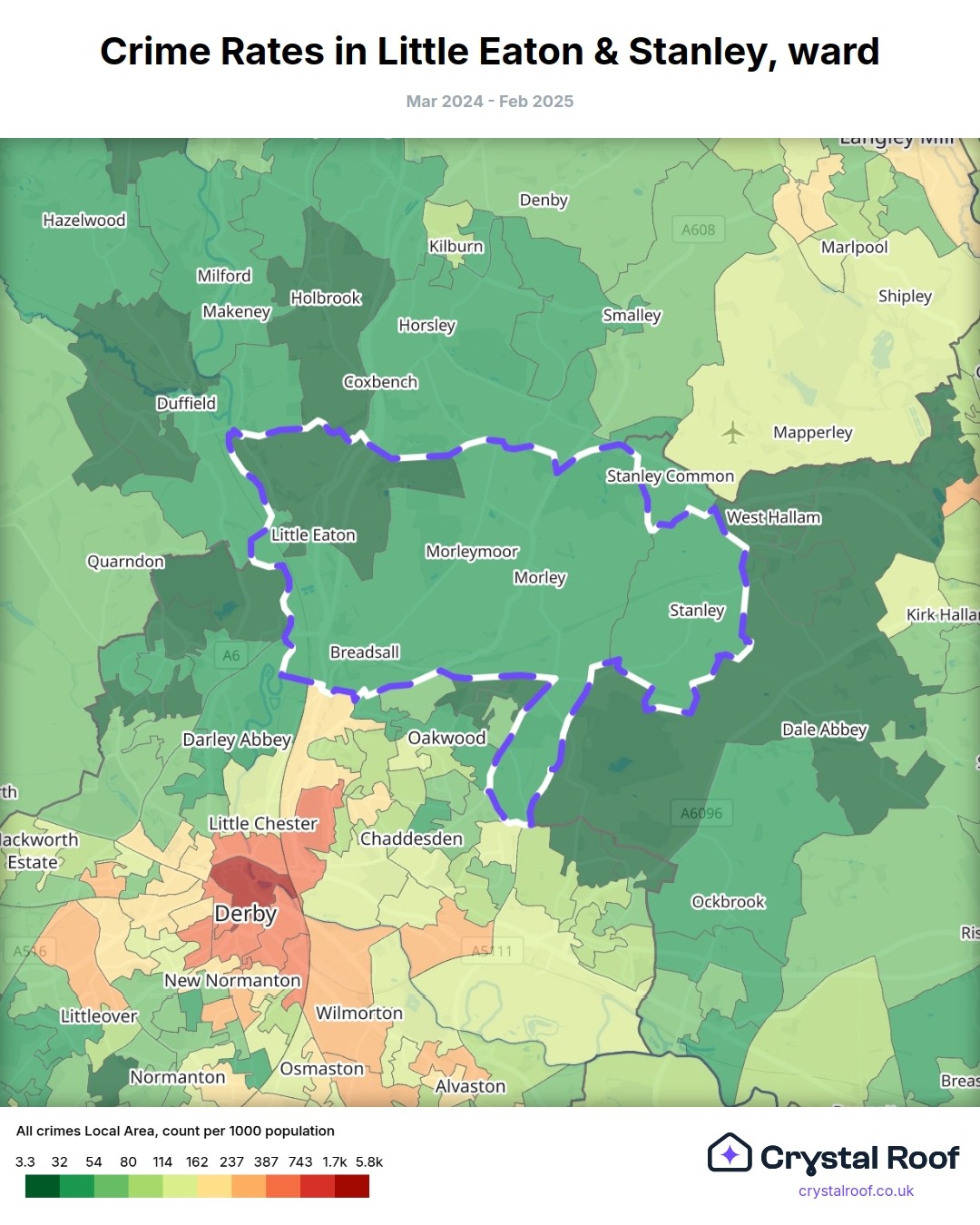 Little Eaton & Stanley, (ward) includes areas with the following crime ratings (see map):