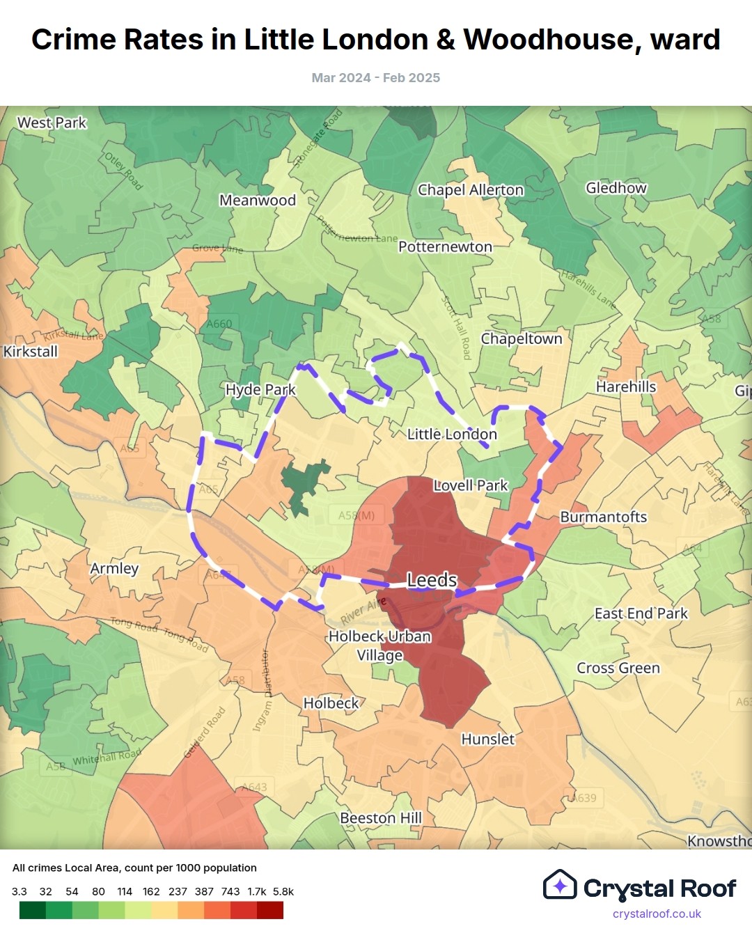 Little London & Woodhouse, (ward) includes areas with the following crime ratings (see map):
