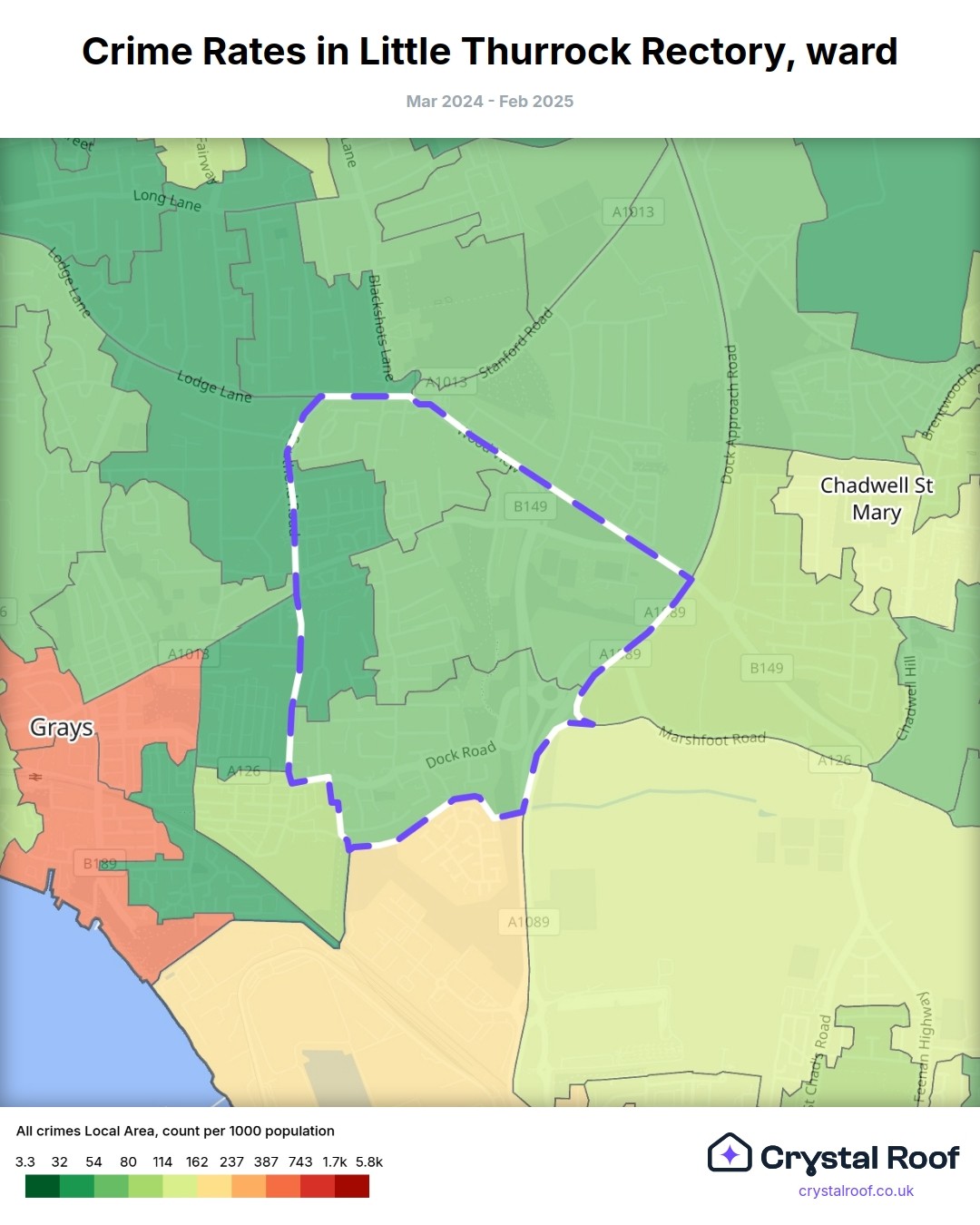 Little Thurrock Rectory, (ward) includes areas with the following crime ratings (see map):