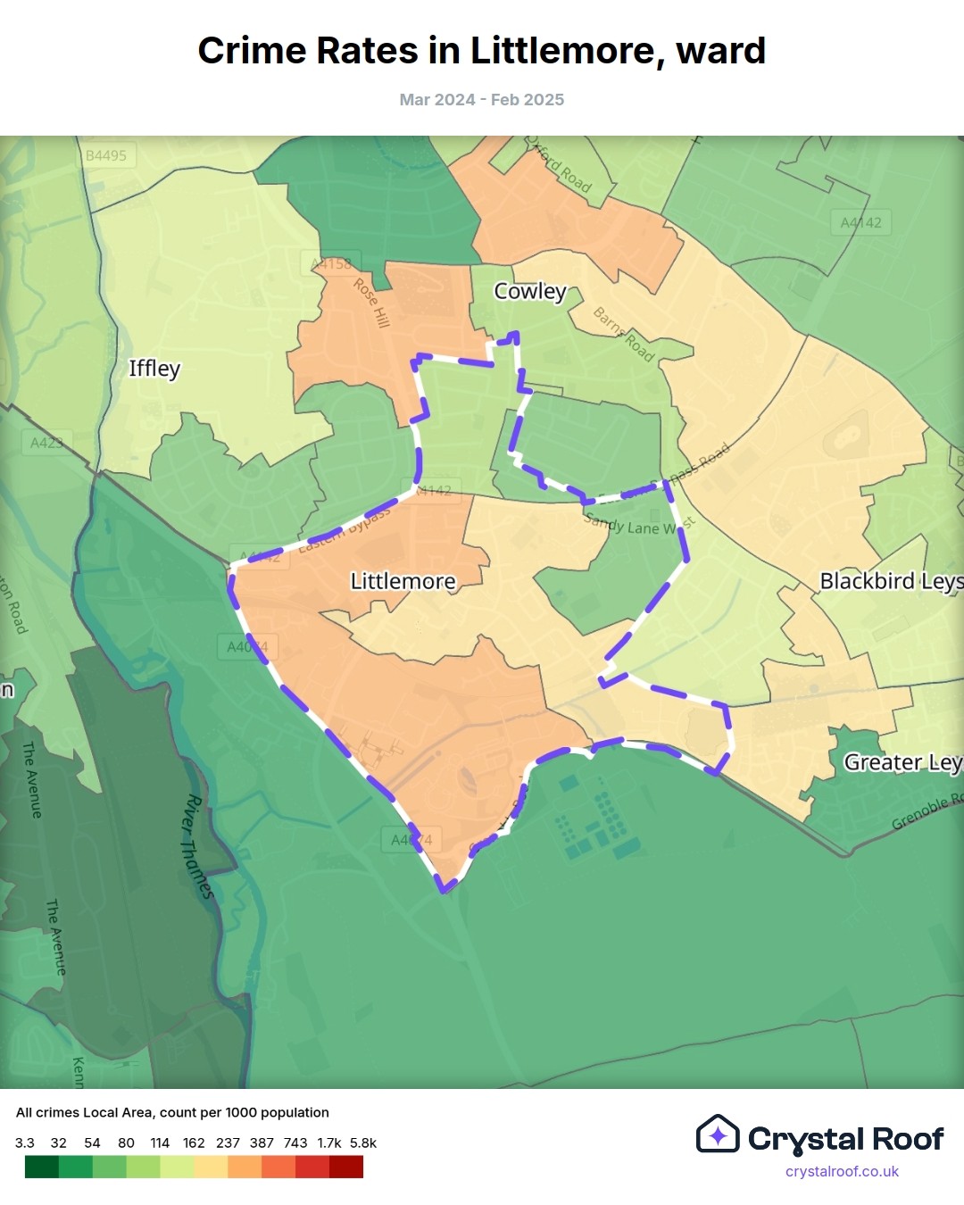 Littlemore, (ward) includes areas with the following crime ratings (see map):