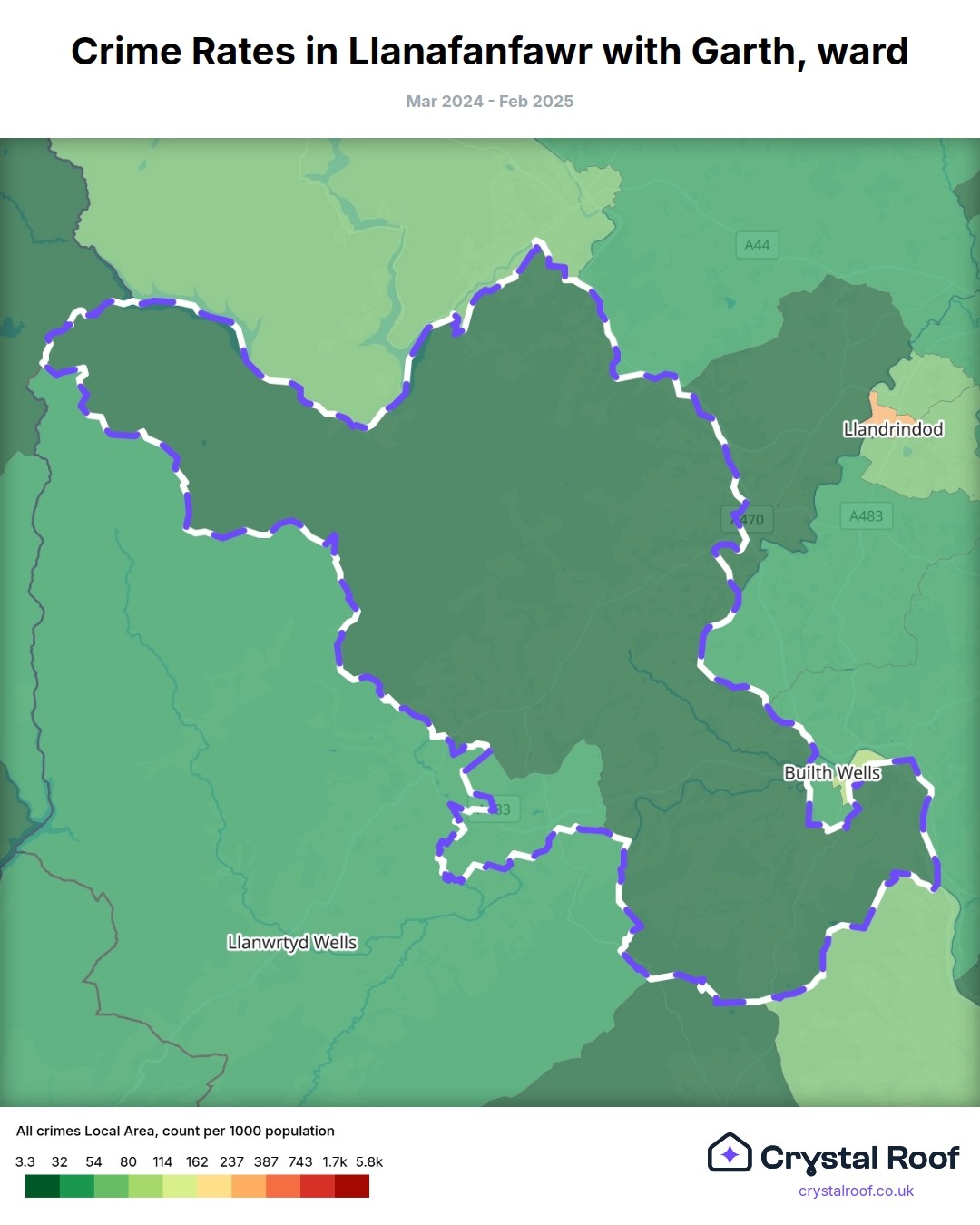 Llanafanfawr with Garth, (ward) includes areas with the following crime ratings (see map):