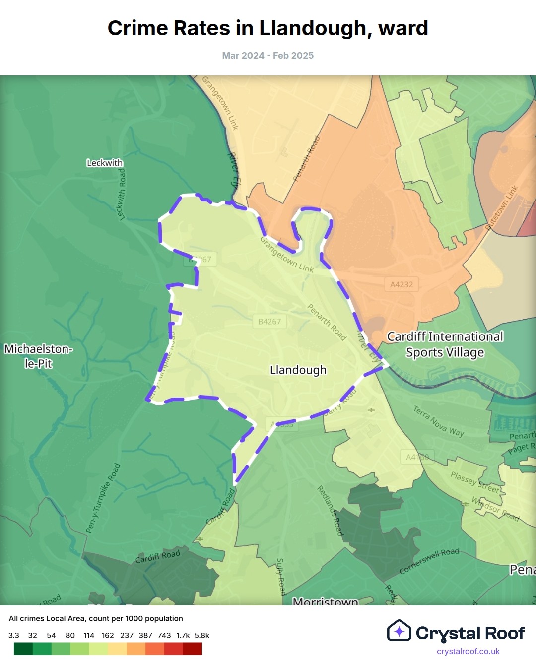 Llandough, (ward) includes areas with the following crime ratings (see map):