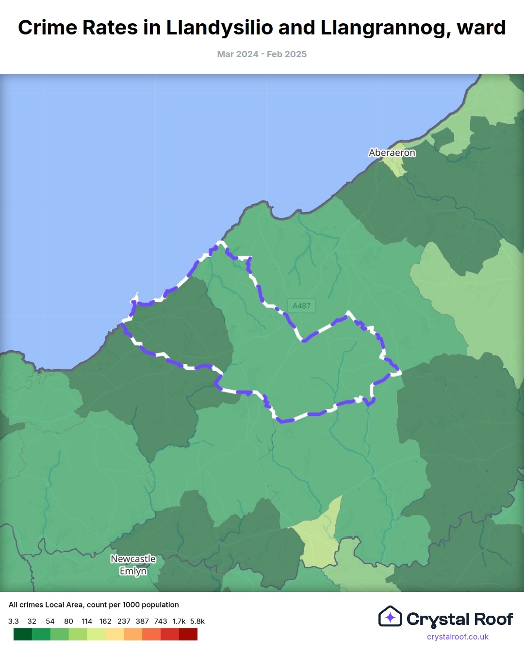 Llandysilio and Llangrannog, (ward) includes areas with the following crime ratings (see map):