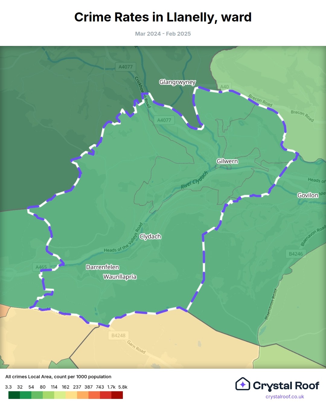 Llanelly, (ward) includes areas with the following crime ratings (see map):
