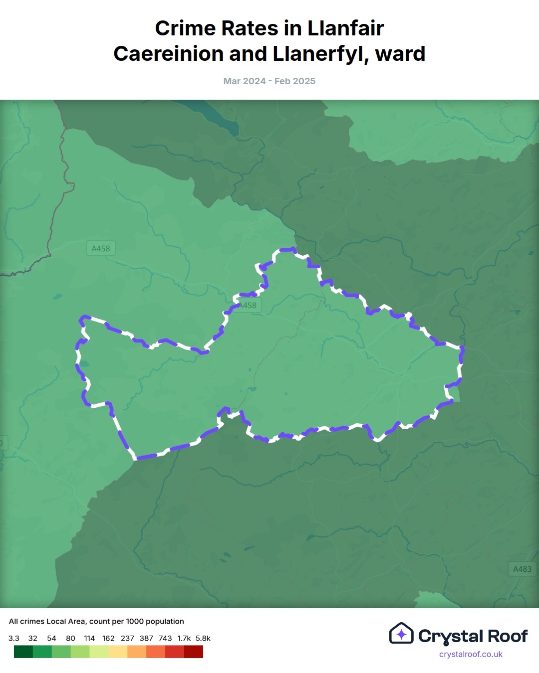Llanfair Caereinion and Llanerfyl, (ward) includes areas with the following crime ratings (see map):