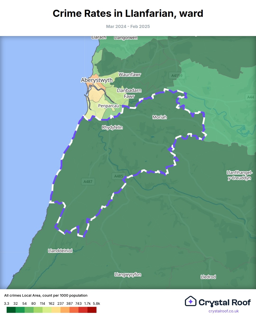 Llanfarian, (ward) includes areas with the following crime ratings (see map):