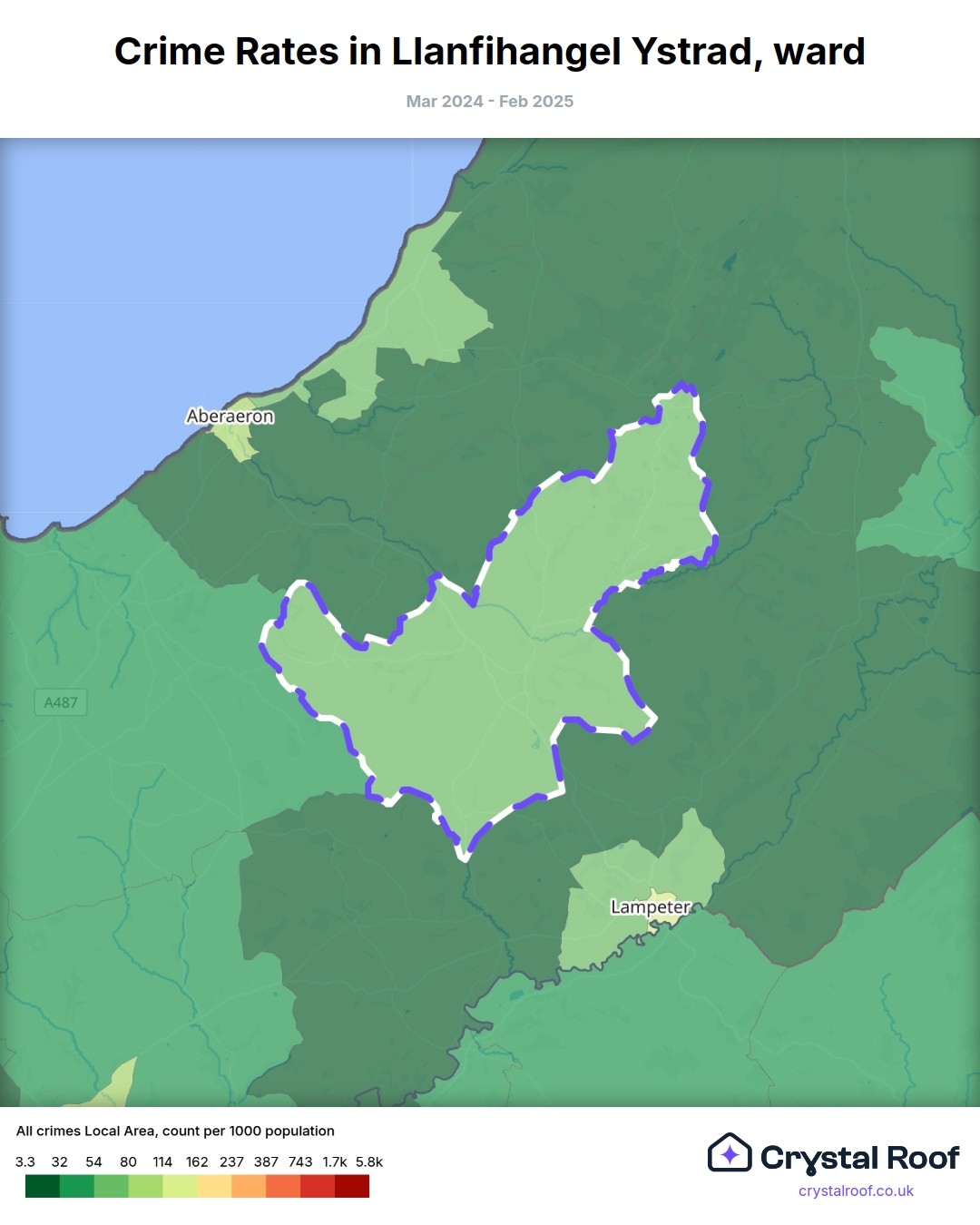 Llanfihangel Ystrad, (ward) includes areas with the following crime ratings (see map):