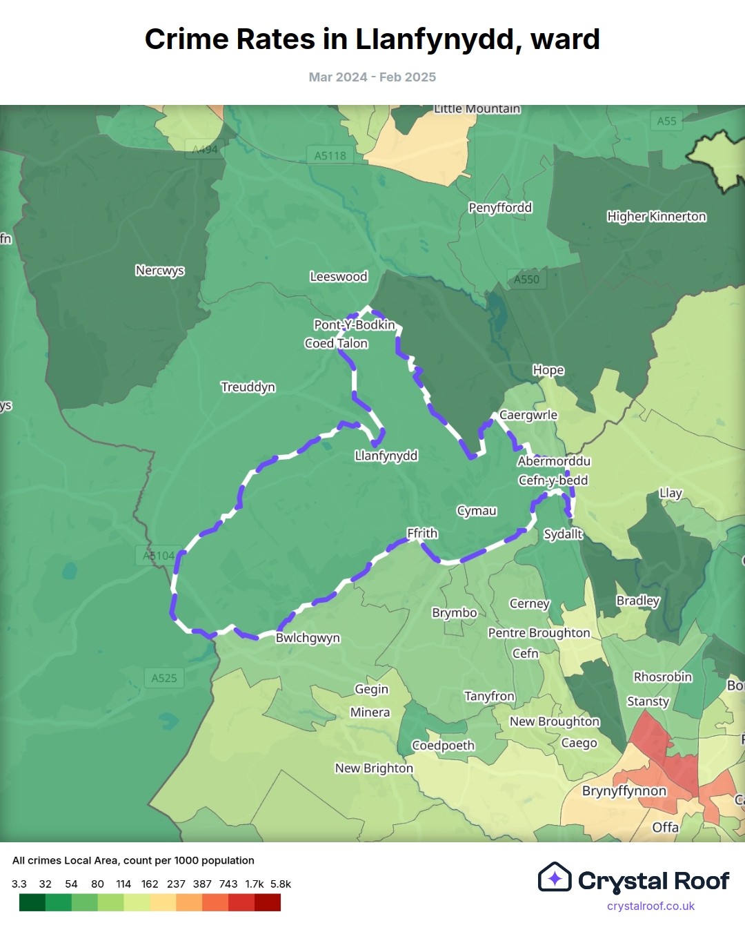 Crime Rates in Llanfynydd, ward