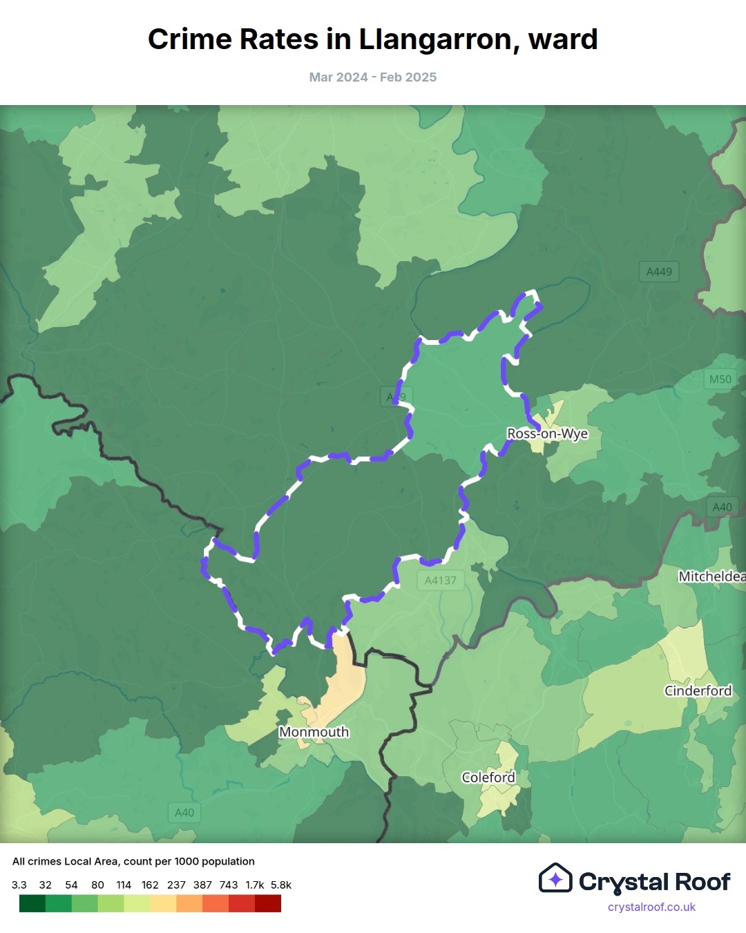Llangarron, (ward) includes areas with the following crime ratings (see map):