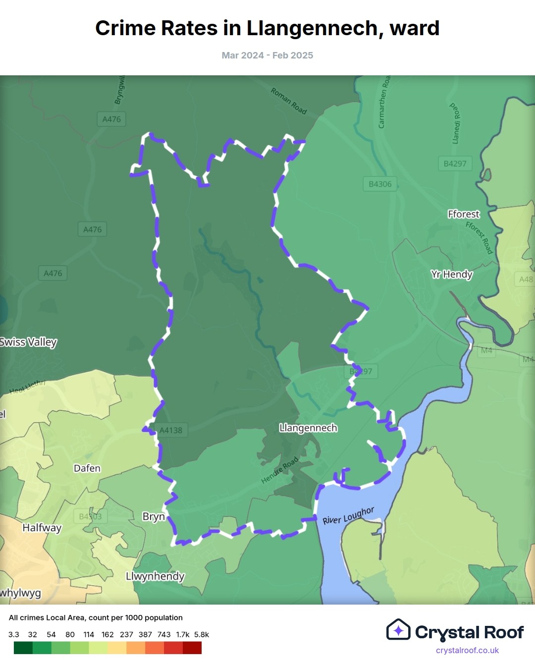 Llangennech, (ward) includes areas with the following crime ratings (see map):