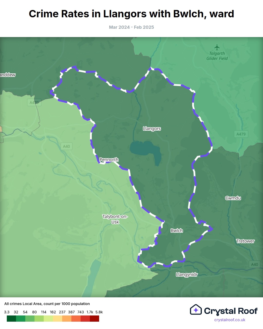Llangors with Bwlch, (ward) includes areas with the following crime ratings (see map):