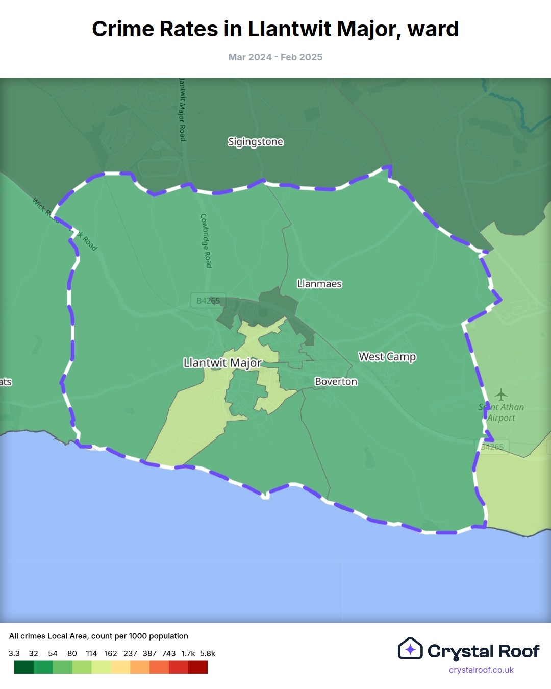 Llantwit Major, (ward) includes areas with the following crime ratings (see map):
