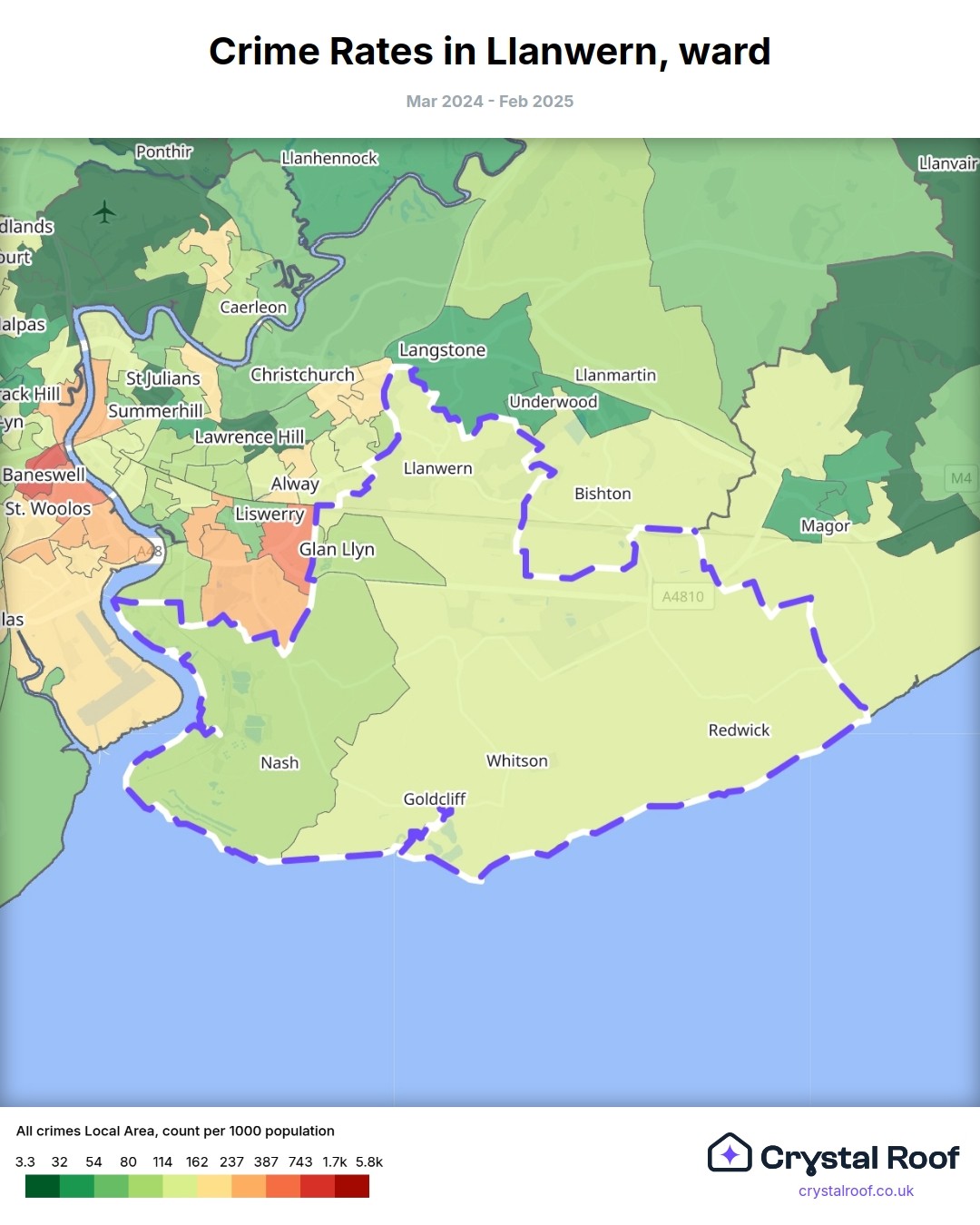 Llanwern, (ward) includes areas with the following crime ratings (see map):