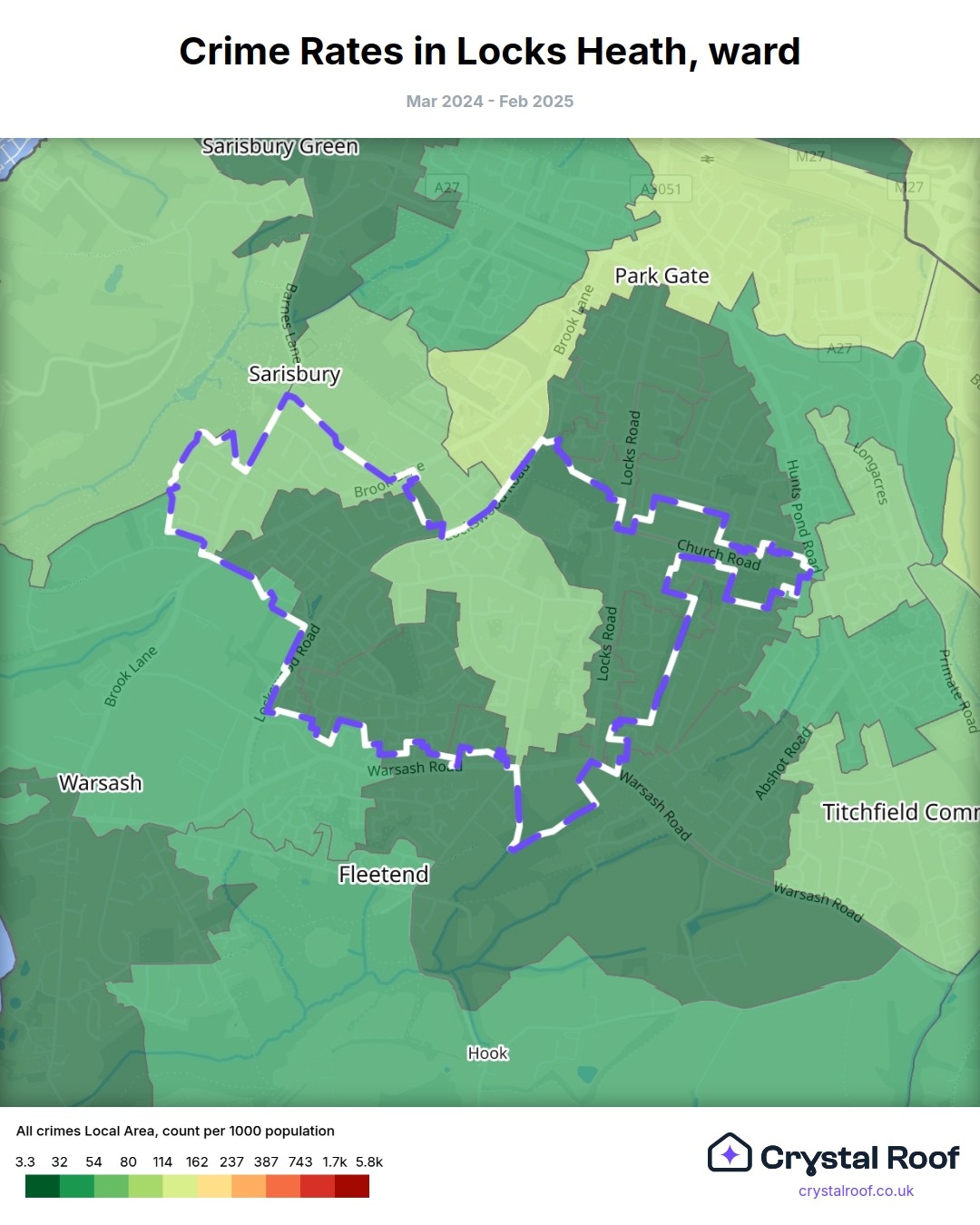 Locks Heath, (ward) includes areas with the following crime ratings (see map):