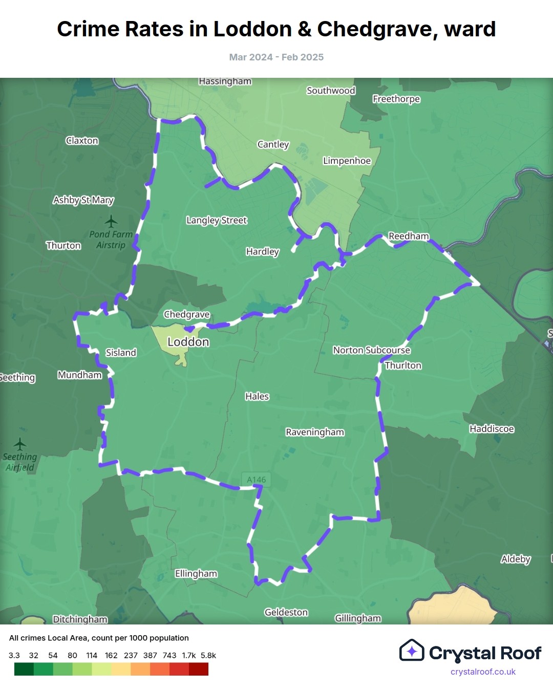 Loddon & Chedgrave, (ward) includes areas with the following crime ratings (see map):