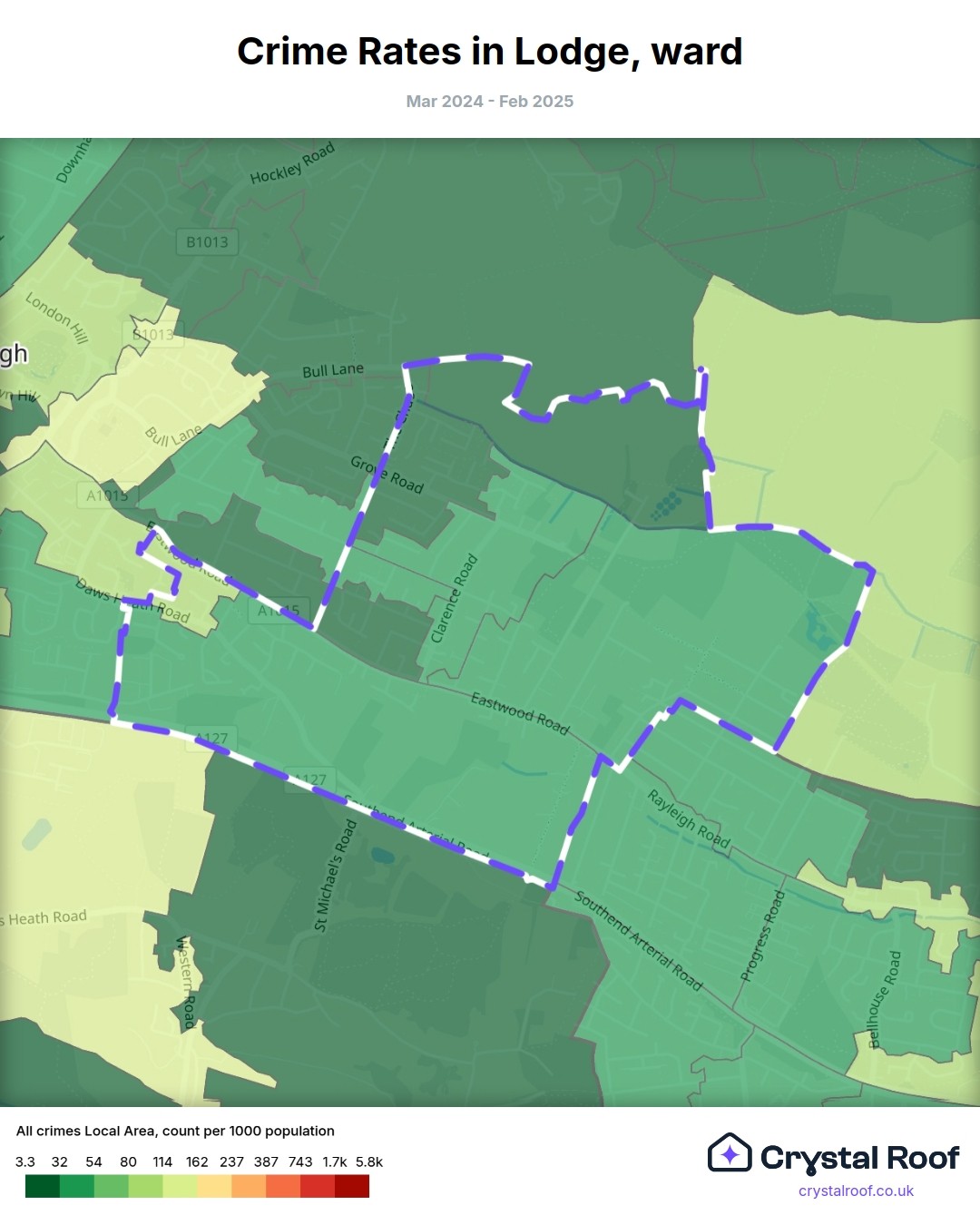 The figures in grey indicate the relative ratings of Lodge (ward) for a specific crime type compared to other wards in England and Wales.