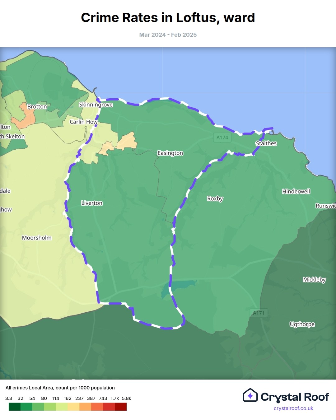 Loftus, (ward) includes areas with the following crime ratings (see map):