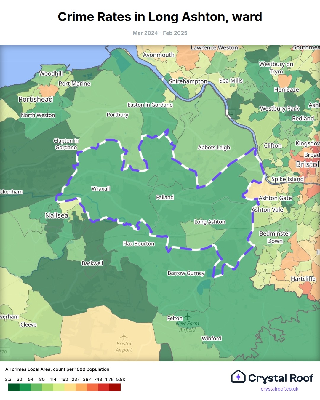 Long Ashton, (ward) includes areas with the following crime ratings (see map):