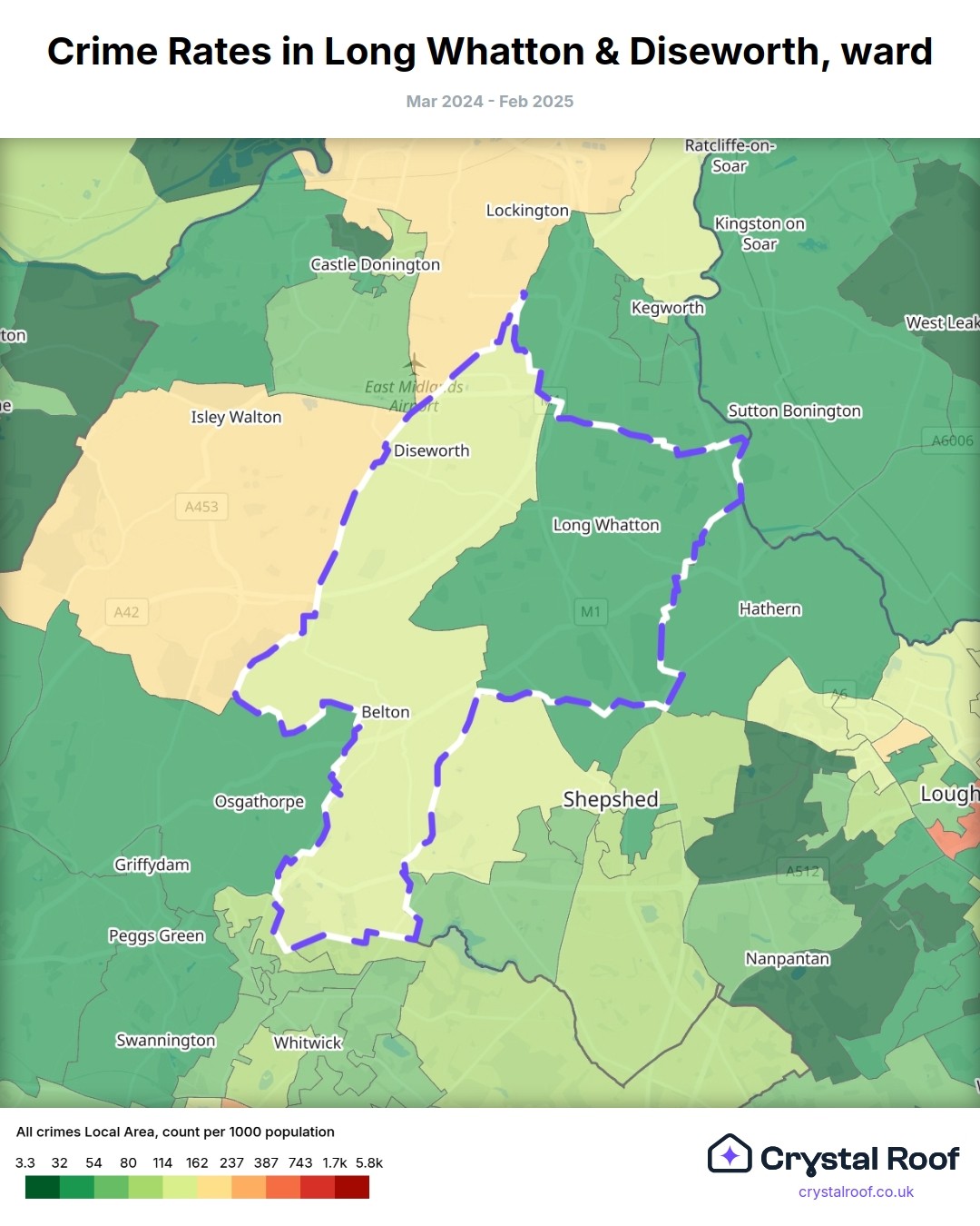 Long Whatton & Diseworth, (ward) includes areas with the following crime ratings (see map):
