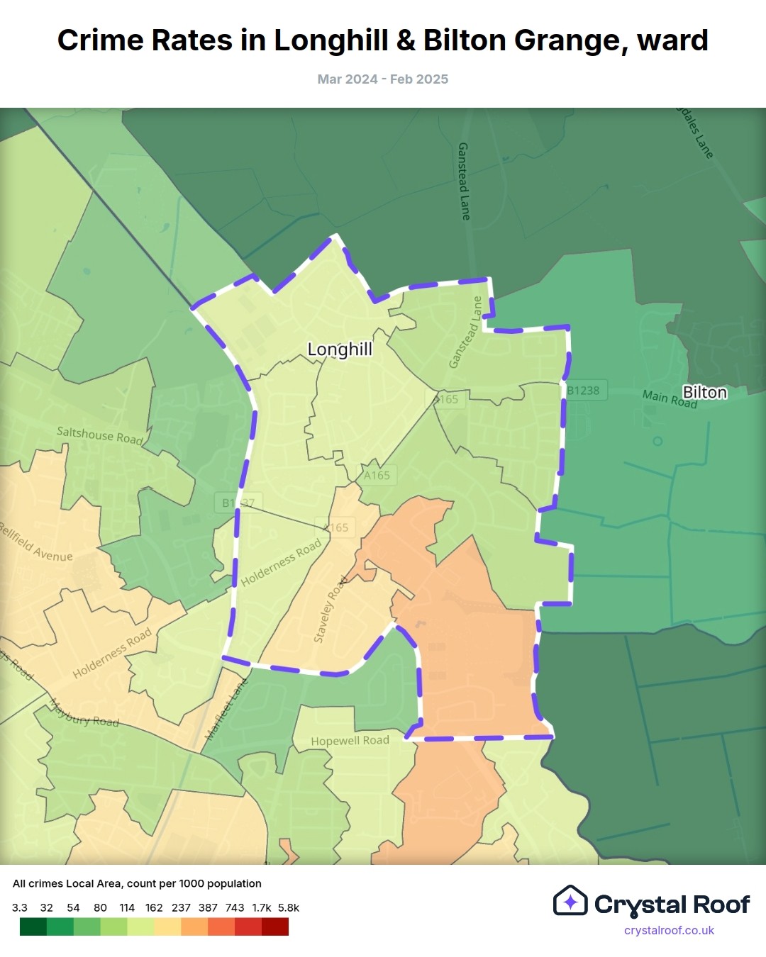 Longhill & Bilton Grange, (ward) includes areas with the following crime ratings (see map):