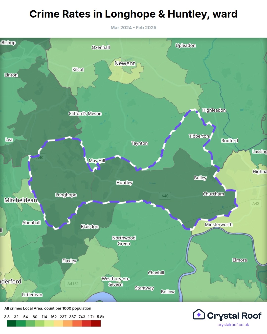 Longhope & Huntley, (ward) includes areas with the following crime ratings (see map):