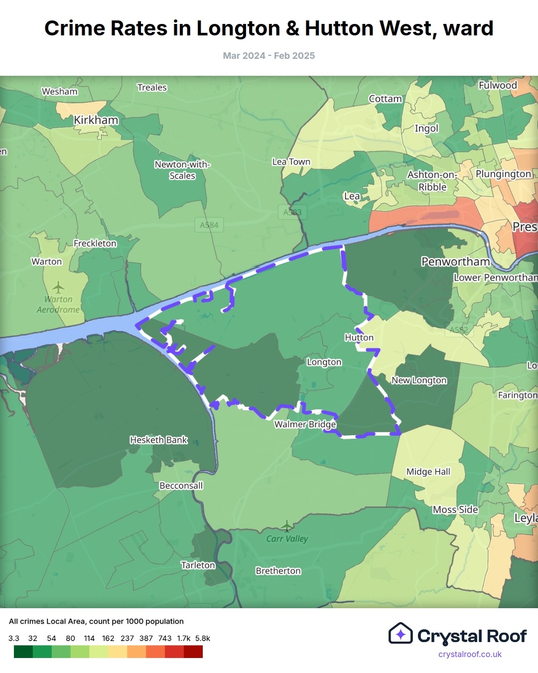 Longton & Hutton West, (ward) includes areas with the following crime ratings (see map):
