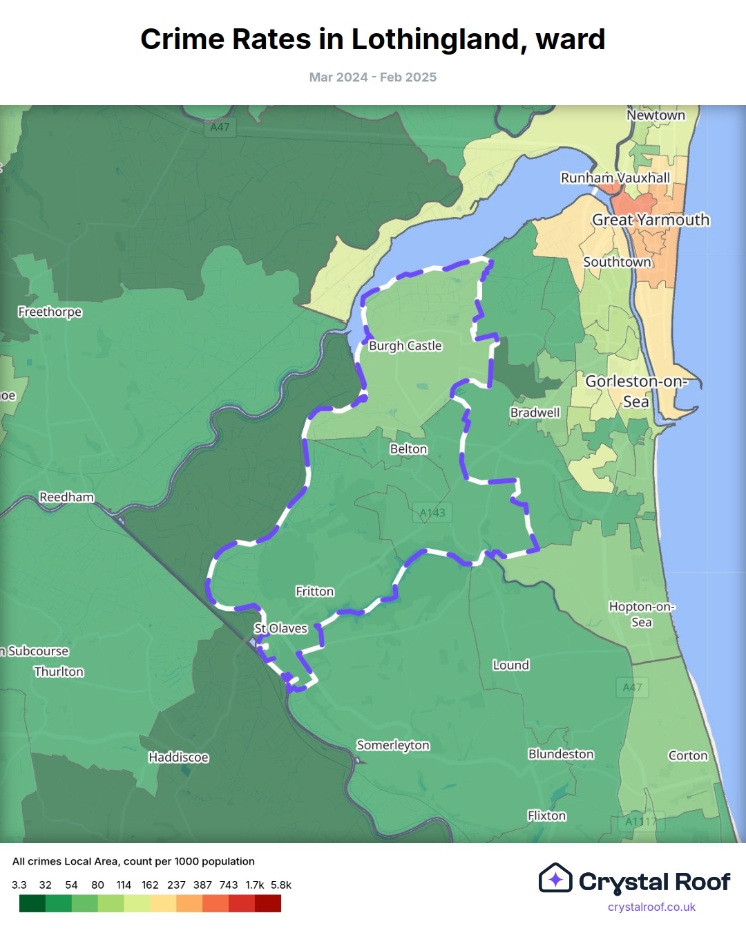 Lothingland, (ward) includes areas with the following crime ratings (see map):
