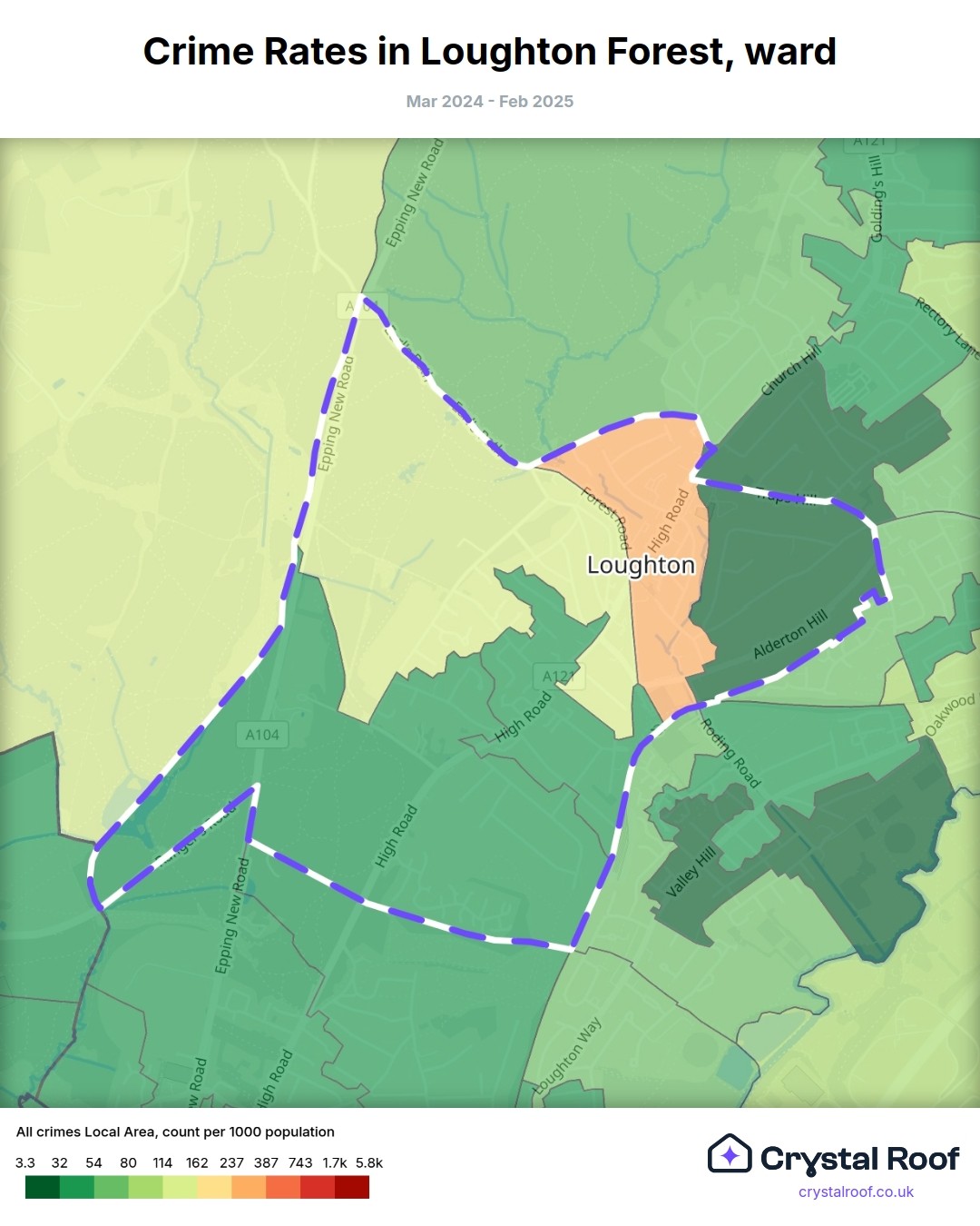 Loughton Forest, (ward) includes areas with the following crime ratings (see map):
