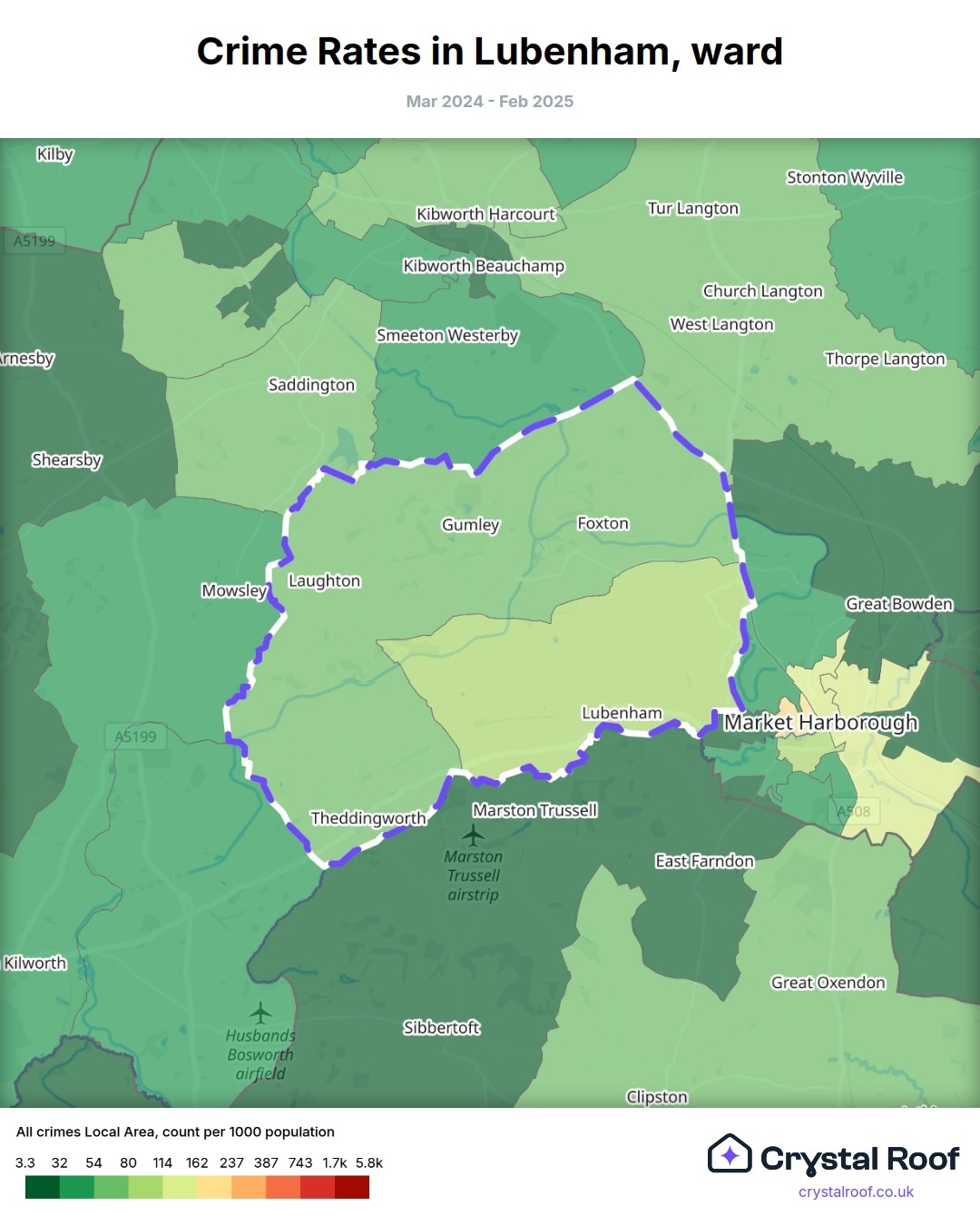 Lubenham, (ward) includes areas with the following crime ratings (see map):