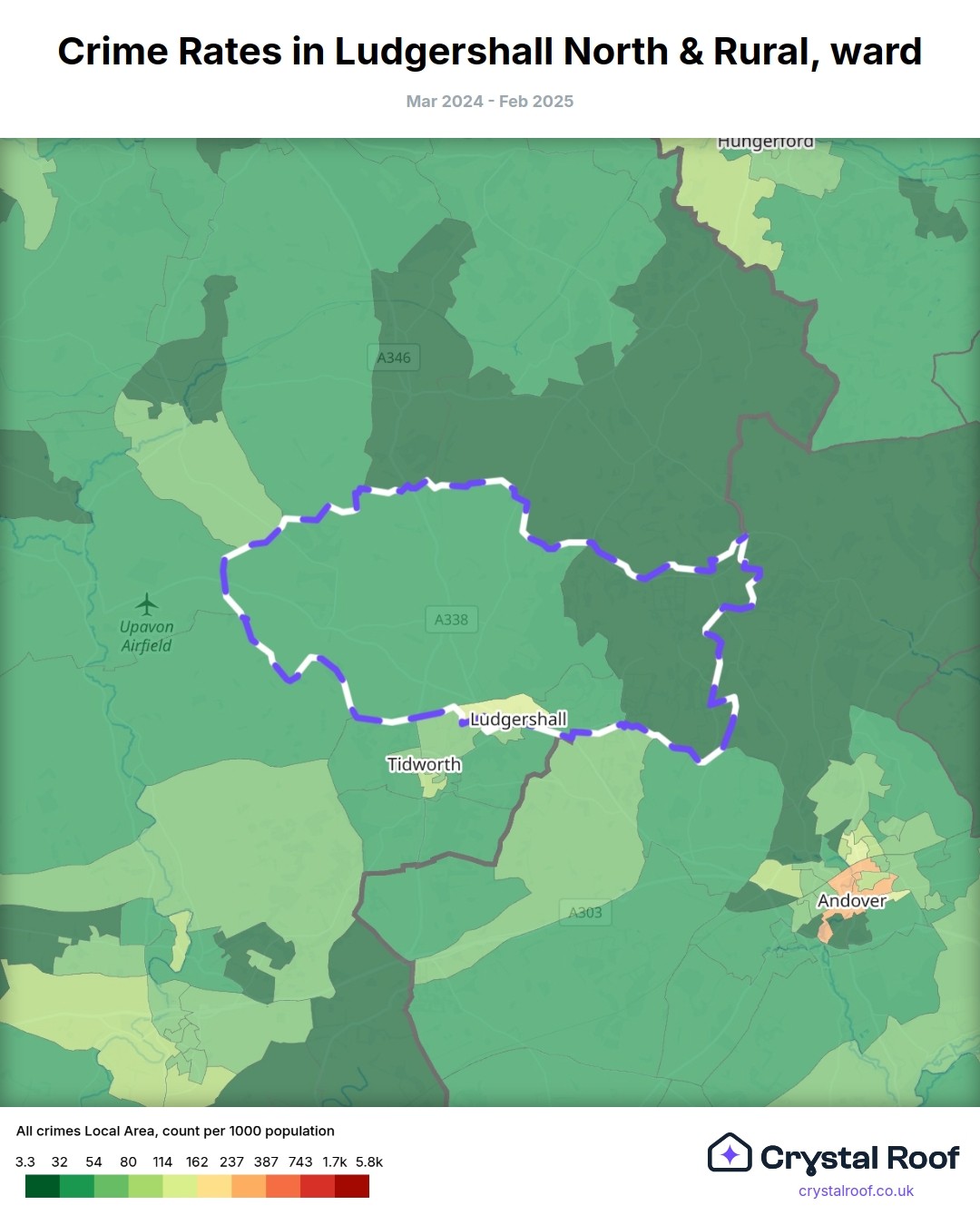 Ludgershall North & Rural, (ward) includes areas with the following crime ratings (see map):