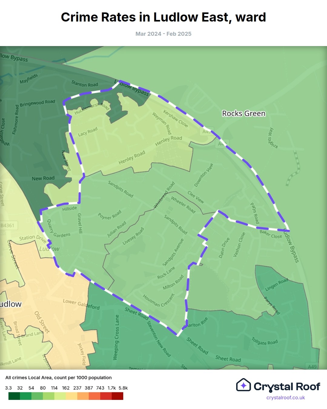 Ludlow East, (ward) includes areas with the following crime ratings (see map):