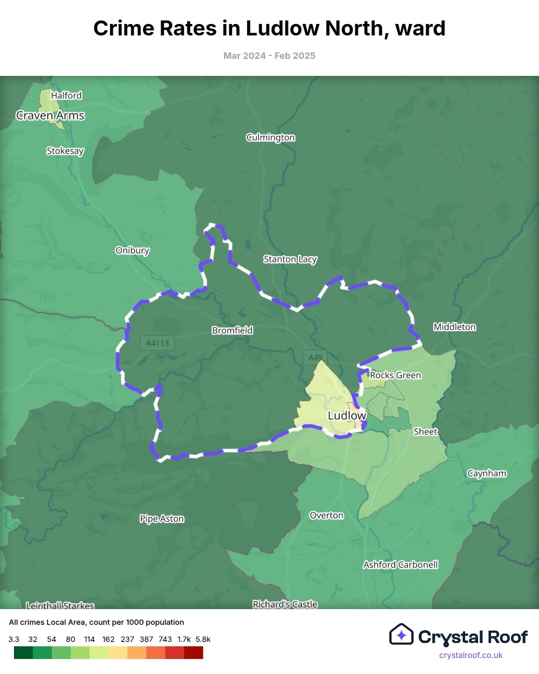 Ludlow North, (ward) includes areas with the following crime ratings (see map):
