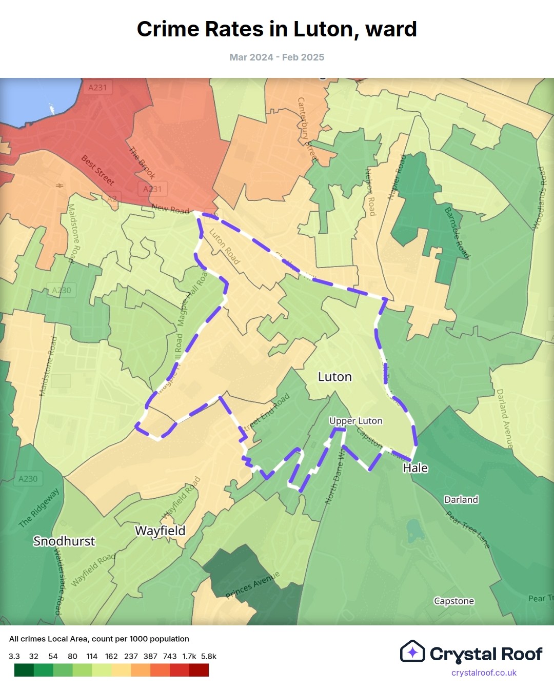 Luton, (ward) includes areas with the following crime ratings (see map):