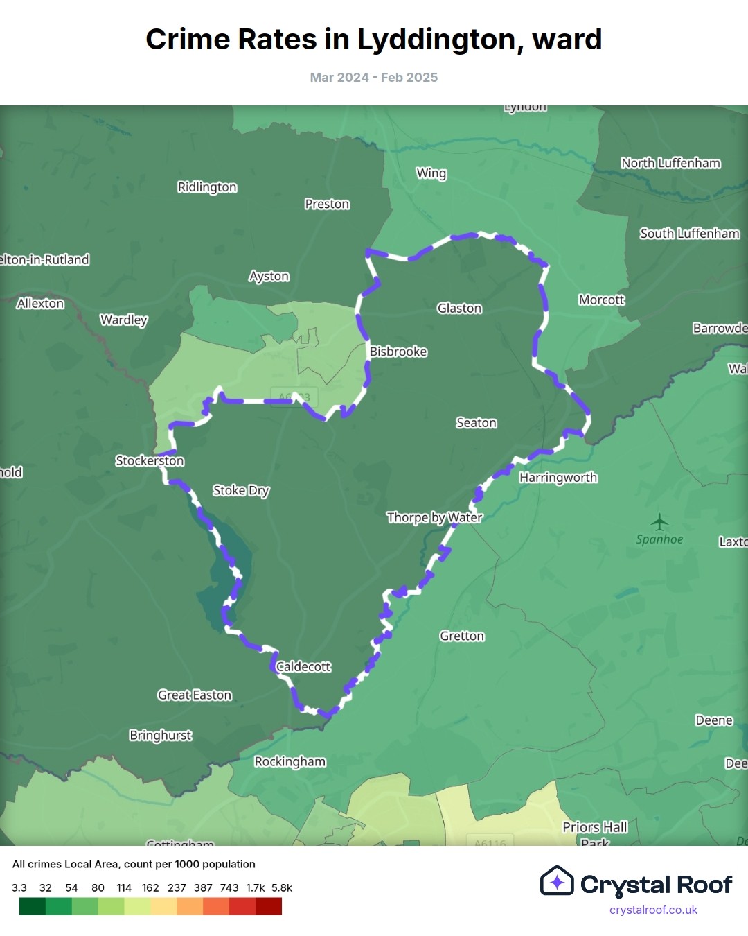 Lyddington, (ward) includes areas with the following crime ratings (see map):