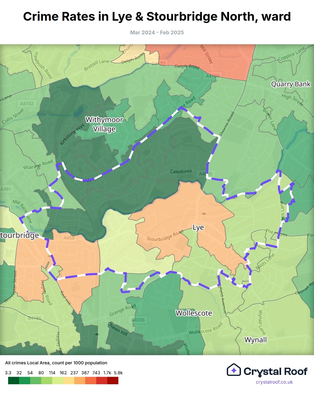 Lye & Stourbridge North, (ward) includes areas with the following crime ratings (see map):
