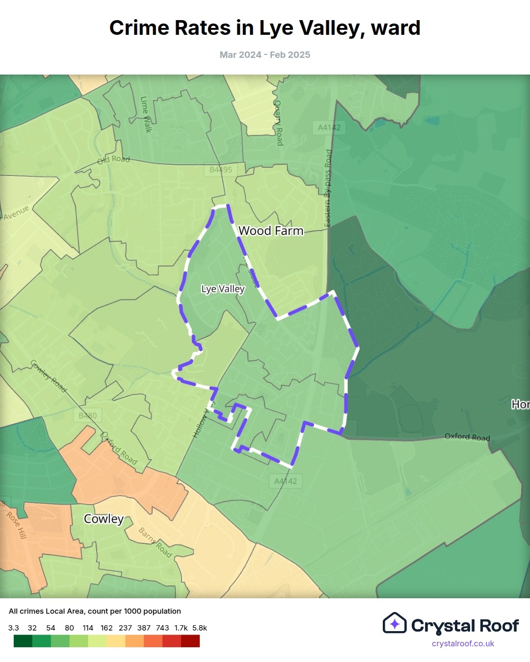 Lye Valley, (ward) includes areas with the following crime ratings (see map):