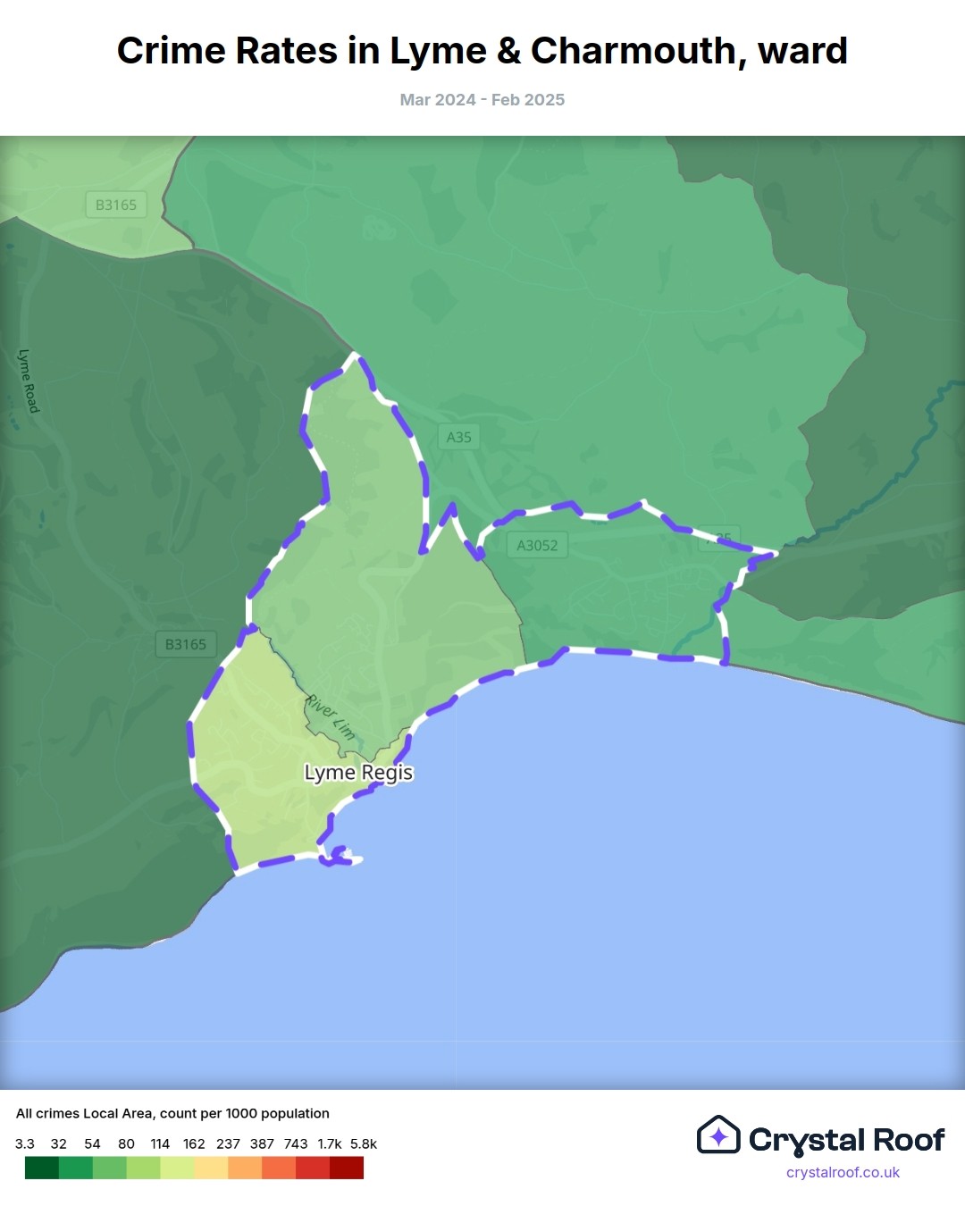 Lyme & Charmouth, (ward) includes areas with the following crime ratings (see map):