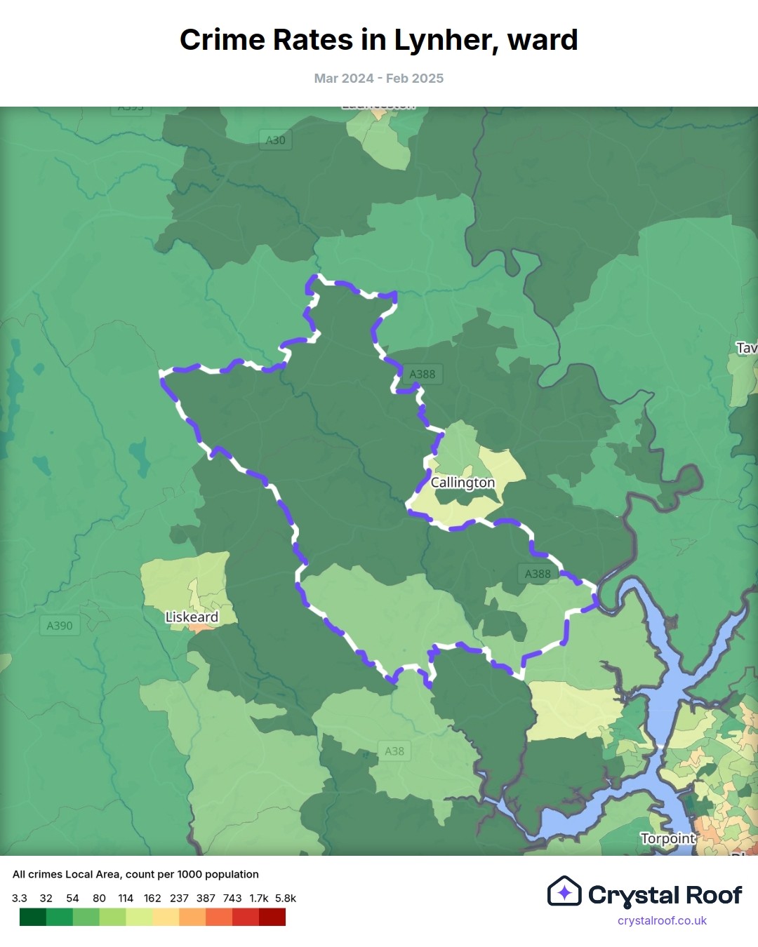 Lynher, (ward) includes areas with the following crime ratings (see map):