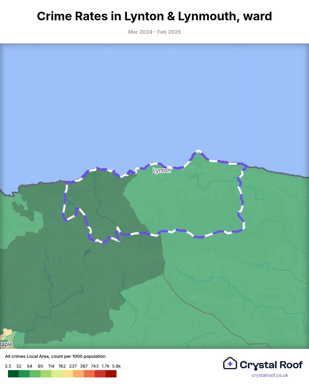 Lynton & Lynmouth, (ward) includes areas with the following crime ratings (see map):